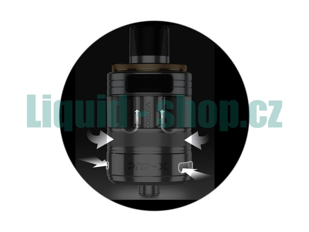 VooPoo PnP-X Pod Tank je revoluční a inovativní hybridní systém kombinující výhody cartridgí a standardních atomizérů se závitem 510. Za tímto zařízením stojí světoznámý výrobce VooPoo. Ve vrchní části zařízení se nachází cartridge s objemem 5 ml, která je kompatibilní s e-cigaretami VooPoo Drag S PnP-X Pod Kit a VooPoo Drag X PnP-X Pod Kit. Ve spodní části se potom nachází odnímatelná základna se závitem 510, díky čemuž budete moci cartridge používat jako klasický atomizér například na mody od stejného výrobce. Je kompatibilní také s dalšími mody se závitem 510. V samotné cartridgi si potom budete moci pohodlně měnit žhavící tělísko. Voopoo PnP-X Pod Tank je kompatibilní se žhavícími hlavami z rodiny VooPoo PnP, lze použít také RBA modul VooPoo PnP-RBA pro namotání vlastní spirálky. Cartridge se skvěle hodí pro přímé potahování do plic (DL), ale také pro vzdušnější klasické šlukování (MTL).