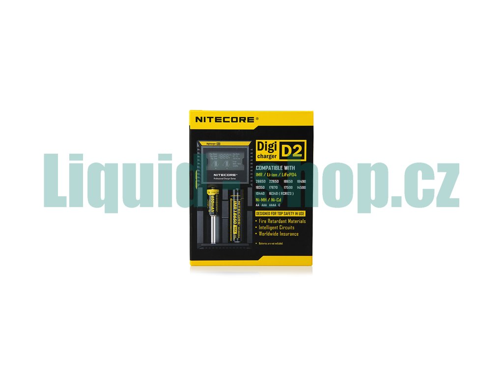 Nabíječka Nitecore D2 je multifunkční nabíječka společnosti Nitecore, která je inovována pro nabíjení baterií IMR, je také kompatibilní s bateriemi Li-on, Ni-MH, Ni-Cd a přes ruční výběr i s LiFeP04. Má v sobě zabudovaný velký a přehledný displej, na kterém je možné sledovat stav nabití baterie, zvolený režim, typ baterie nebo napětí. Tato inteligentní nabíječka si sama hlídá stav nabití baterií a jakmile dojde k nabití, ihned nabíjení zastaví.
