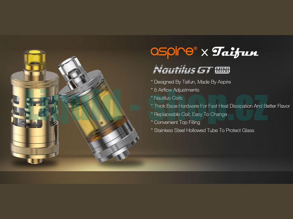 Clearomizer aSpire Nautilus GT Mini je zmenšenou verzí velmi oblíbeného Clearomizeru aSpire Nautilus GT, který si získal mezi uživateli elektronických cigaret opravdu velkou oblibu, a to předně díky svému kvalitnímu zpracování a dokonalým podáním chuti. aSpire tak vyslyšel volání mnoha uživatelů a přichází tak se zmenšenou verzí, při jejíž výrobě navázal na předchozí úspěšnou spolupráci se špičkovým výrobcem Taifun.