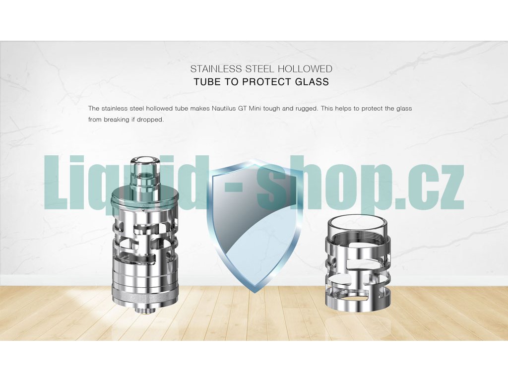 Kvalitní konstrukce Clearomizer aSpire Nautilus GT Mini je postaven na kvalitní základně z ušlechtilé oceli, která je doplněna o kvalitní pyrexové sklo. Celkový objem pro náplň tak činí až 2,8ml zásobního prostoru |
