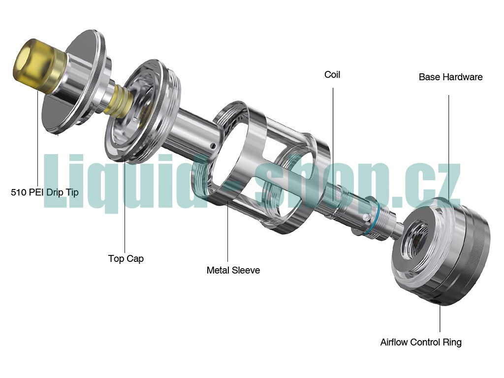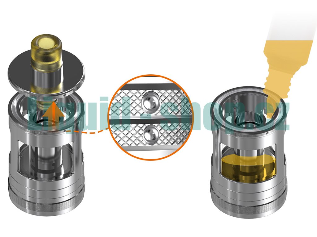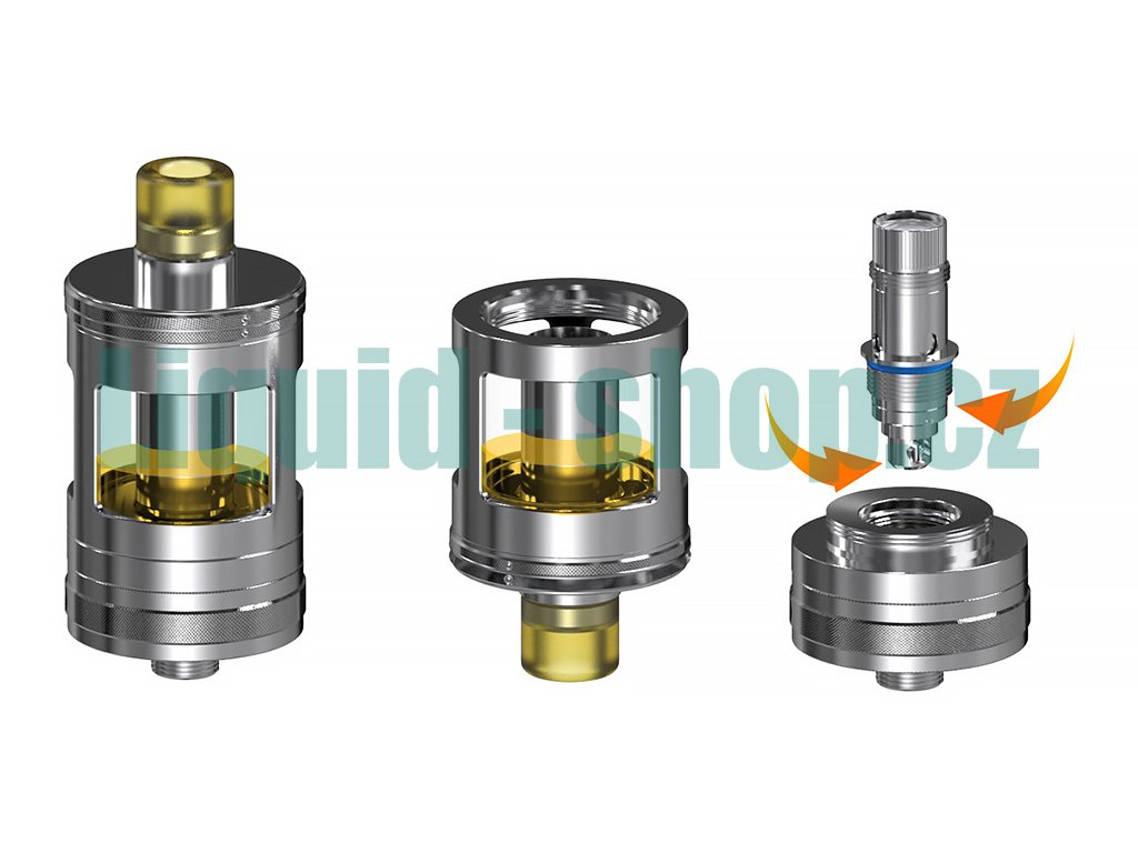 Prvotřídní MTL Clearomizer z nerezové oceli o celkovém objemu 4,2ml, horní plnění, regulace přívodu vzduchu, podpora žhavících hlav Aspire BVC, závit 510, 2x žhavící hlava v Setu.