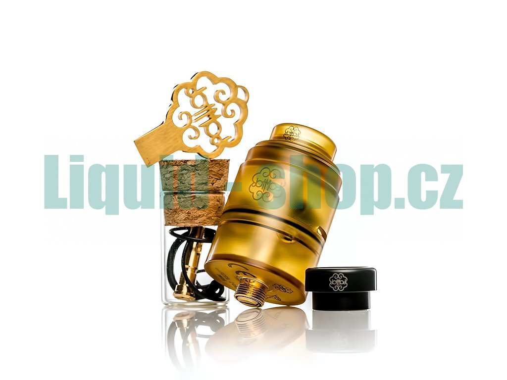 Průměr 24mm, kapacita 2ml, materiál nerezová pozlacená ocel a Ultem, BF Squonk pin, instalace až 2 spirál, horní plnění, navrženo pro DL styl vapování, závit 510.