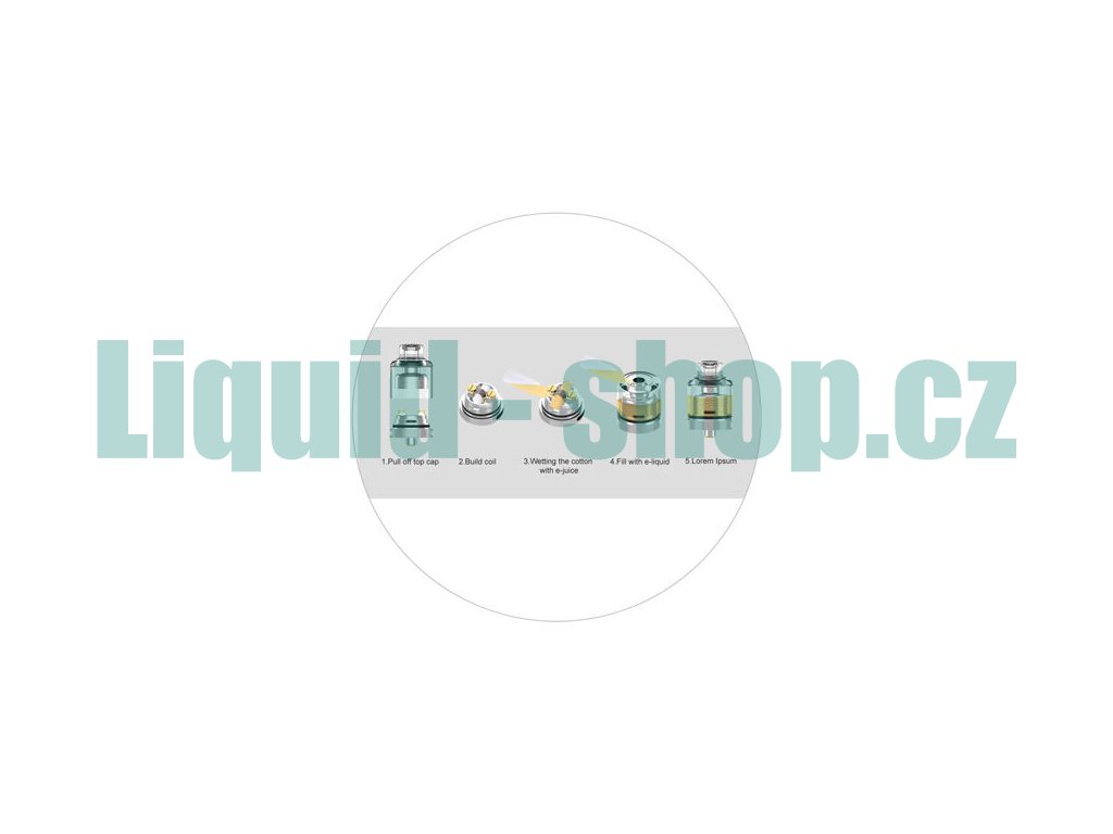 Po demontáži atomizéru získáte přístup k samotné základně. Tu tvoří dva protilehlé sloupky, do kterých je možné nainstalovat jednu spirálku dle vlastního výběru. Základna umožňuje velice pohodlnou a rychlou instalaci, se kterou si poradí také začátečníci v oblasti DIY motacích atomizérů. Celý atomizér tak osadíte během několika málo minut.