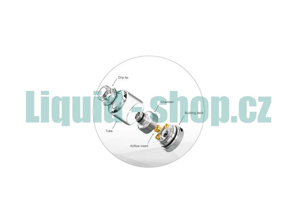 Ve spodní části se nachází neregulovatelný airflow systém, který doplňuje vnitřní vzduchová vložka. Ta se nachází přímo pod spirálkou a dá se dle potřeby měnit. V balení najdete čtyři vložky s různými průměry pro různou produkci páry. Všechny vložky nabídnou širší průměr, atomizér se zaměřuje na uživatele přímého potahování do plic (DL).