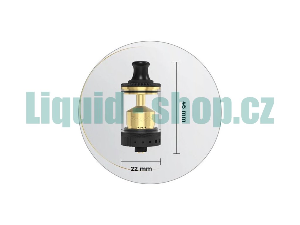 GAS MODS Pallas RTA je nový motací atomizér od populární společnosti GAS MODS, který se zaměřuje na příznivce klasického šlukování. Jedná se o kompaktní atomizér se stylovým a minimalistickým designem, který zaujme v prvé řadě svými rozměry a celkovým zpracováním. Tělo je vyrobeno z nerezové oceli a pyrexového skla. Samotné sklo budete moci navíc nahradit za nerezové tělo s polykarbonátem a snadno tak změnit celkový vzhled atomizéru. Pallas RTA nabídne délku jen 46 mm a průměr se zastavil na krásných 22 mm. Ve spodní části se nachází závit typu 510 pro kompatibilitu s drtivou většinou modů na dnešním trhu. Základní objem tanku činí 3 ml. Atomizér disponuje jednoduchým systémem vrchního plnění. Postačí tak odšroubovat uzávěr a během pár vteřin znovu doplnit do plné kapacity.