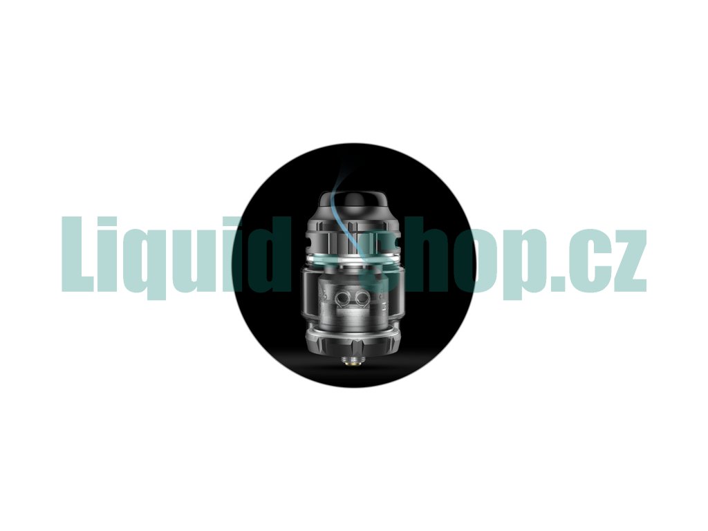 Clearomizér GeekVape Zeus X RTA láká rovněž také na obrovský objem tanku. Uprostřed se nachází praktické vyboulené pyrexové tělo, díky němuž můžete do tanku dolít až 4,5 ml e-liquidu. Tuto kapacitu oceníte při cestování, nebo venkovní procházce, kdy není čas na doplňování. Hravě si poradí s intenzivním vapováním. V případě nutnosti doplnění jednoduchým pohybem odejmete vrchní náustek a doplníte potřebné množství e-liquidu díky praktickému vrchnímu plnění. O výborné chuťové podání se potom postará vrchní systém airflow. Vrchní airflow eliminuje případnou propustnost e-liquidu spodními airflow otvory. Díky tomu se nemusíte bát jakýchkoliv úniků e-liquidu. Díky vrchnímu umístění regulačního airflow kroužku navíc vzduch efektivněji cirkuluje uvnitř atomizéru a vytváří mnohem lepší podání chuti, než u standardních clearomizérů. GeekVape Zeus X je skutečně důstojným nástupcem clearomizéru GeekVape Zeus Dual.
