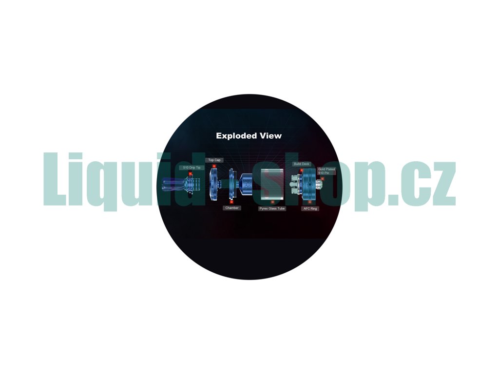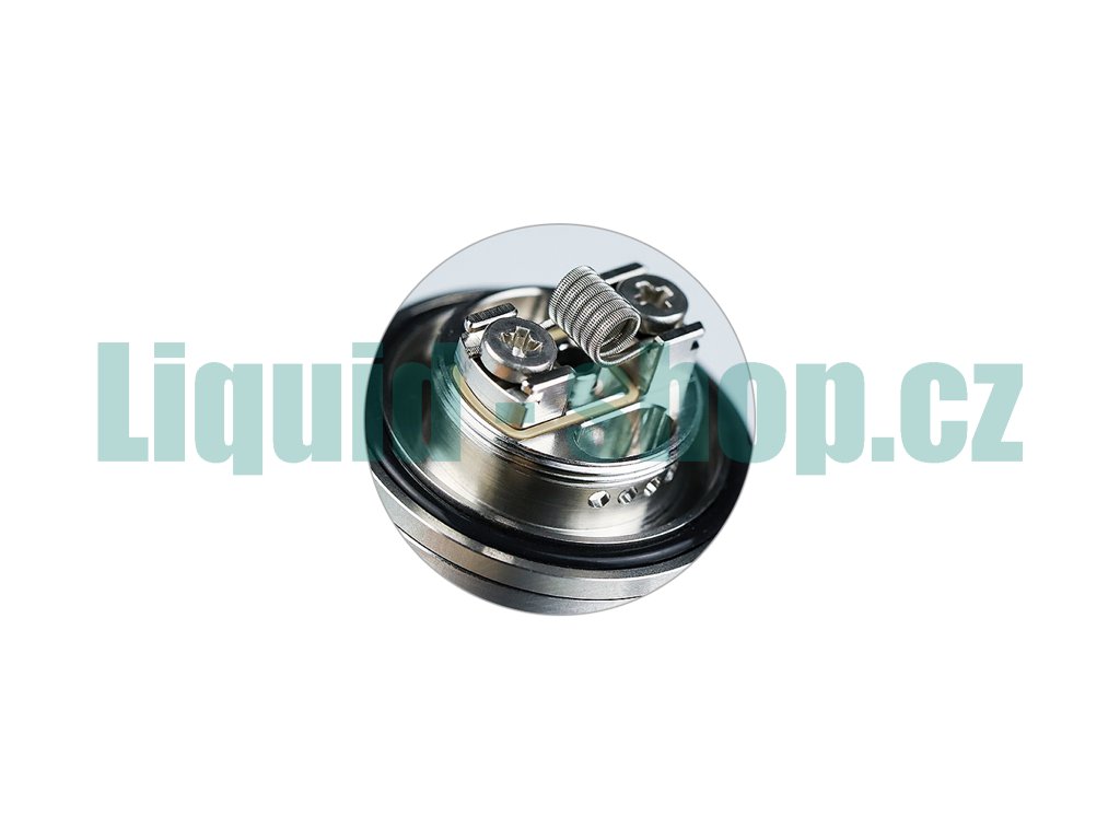 Krásné dílenské zpracování a kvalitní kovová konstrukce nejsou jedinými hlavními výsadami celého atomizéru. Mimo precizně navržený design myslel výrobce také na bezpečnost, z toho důvodu osadil vrchní i spodní část atomizéru vystouplým kovovým kroužkem, který lépe chrání atomizér proti případnému pádu.