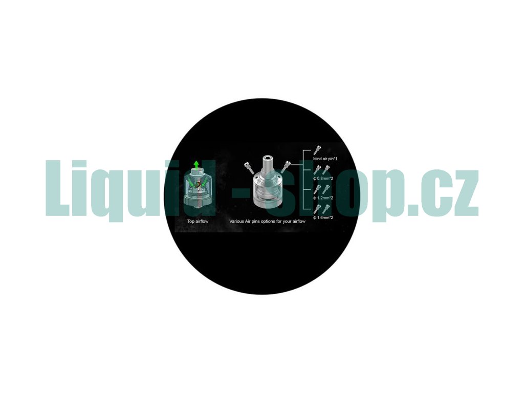 Uvnitř atomizéru se nachází základna pro jednu spirálku. Tuto vlastní spirálku snadno uchytíte pomocí dvou protilehlých šroubků, instalaci hravě zvládne naprosto každý. Instalace zabere jen několik málo minut. Clearomizér nabídne rovněž optimální tuhost potahu s možností pokročilé regulace. Airflow systém je umístěn ve vrchní části clearomizéru a tvoří ho dva otvory, které budete moci osadit speciálními vzduchovými piny. V balení se nachází hned několik pinů s různými průměry vzduchového otvoru, nebo také utěsňovací pin pro kompletní utěsnění jednoho ze dvou vzduchových otvorů. Steam Crave Mini Robot RTA je stylový a jednoduchý motací clearomizér, který zprostředkuje skvělé podání chuti a optimální produkci páry dle vašich představ.