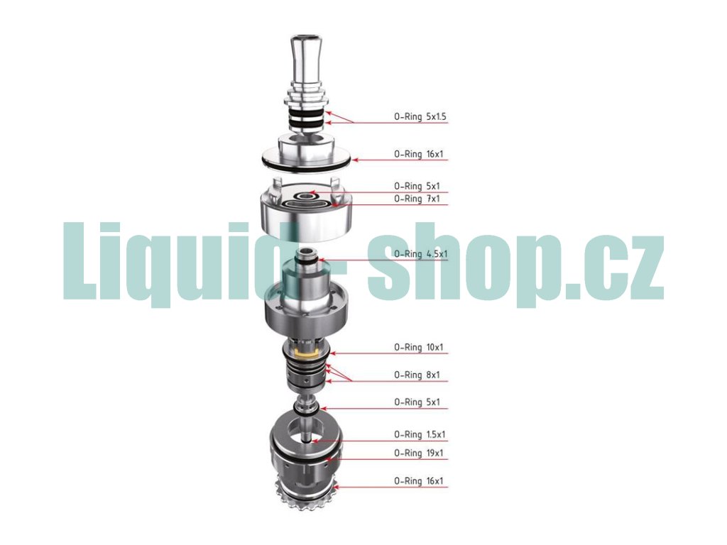 Ve spodní části atomizéru na vás čeká oblíbený závit typu 510, díky čemuž je atomizér kompatibilní s drtivou většinou modů a baterií na současném trhu. Skvěle si bude rozumět nejen se složitějšími mody, ale také s praktičtějšími a jednoduššími zařízeními pro každodenní provoz. Závit se příjemně šroubuje a všechny součásti krásně doléhají.
