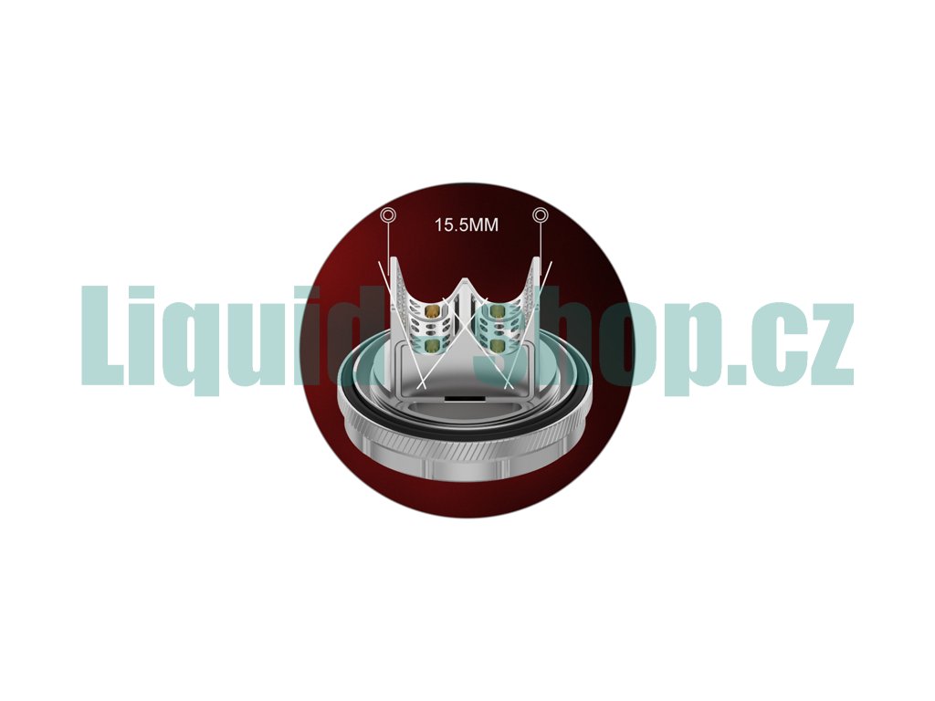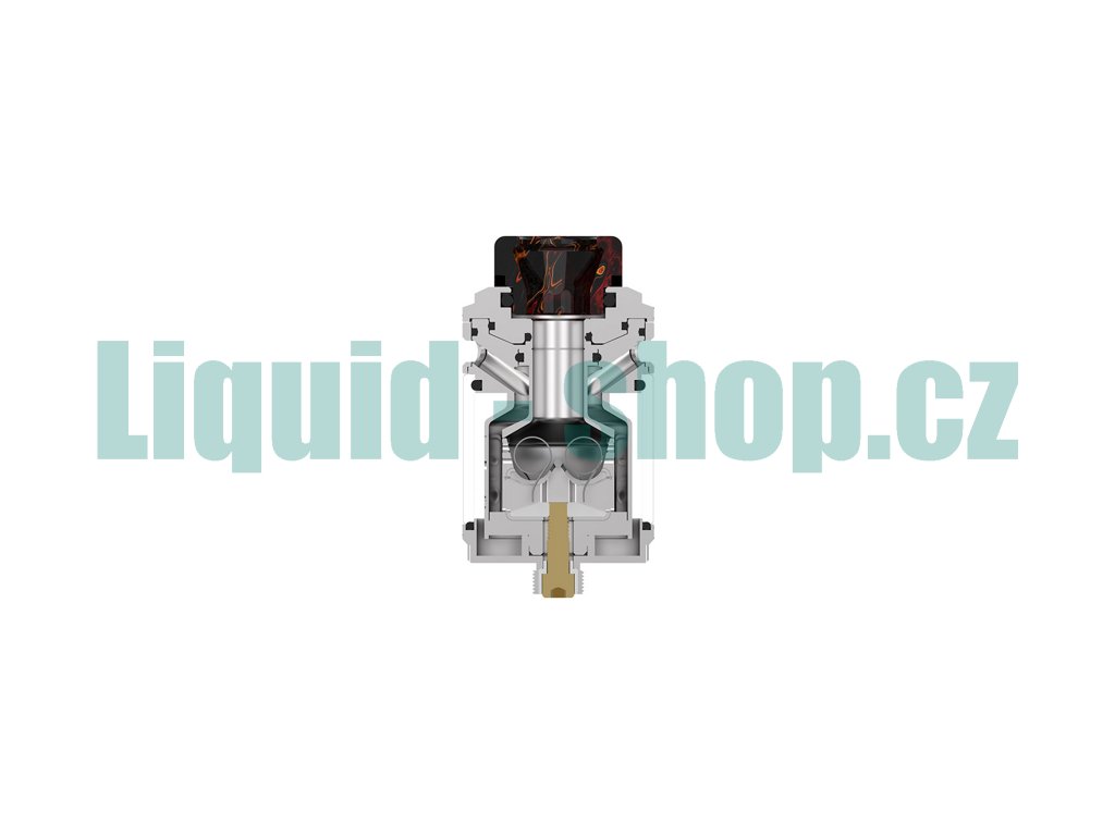 Zajímavým prvkem atomizéru je potom systém airflow. Ten je umístěn ve vrchní části, kde se nachází široký otvor pro vstup vzduchu do atomizéru. Na otvoru najdete praktický regulační kroužek pro pohodlnou regulaci přívodu vzduchu a ovlivnění výsledné tuhosti potahu. Díky vrchnímu přívodu vzduchu navíc vzduch uvnitř atomizéru cirkuluje mnohem efektivněji a výsledná chuť vás doslova dokáže srazit do kolen.