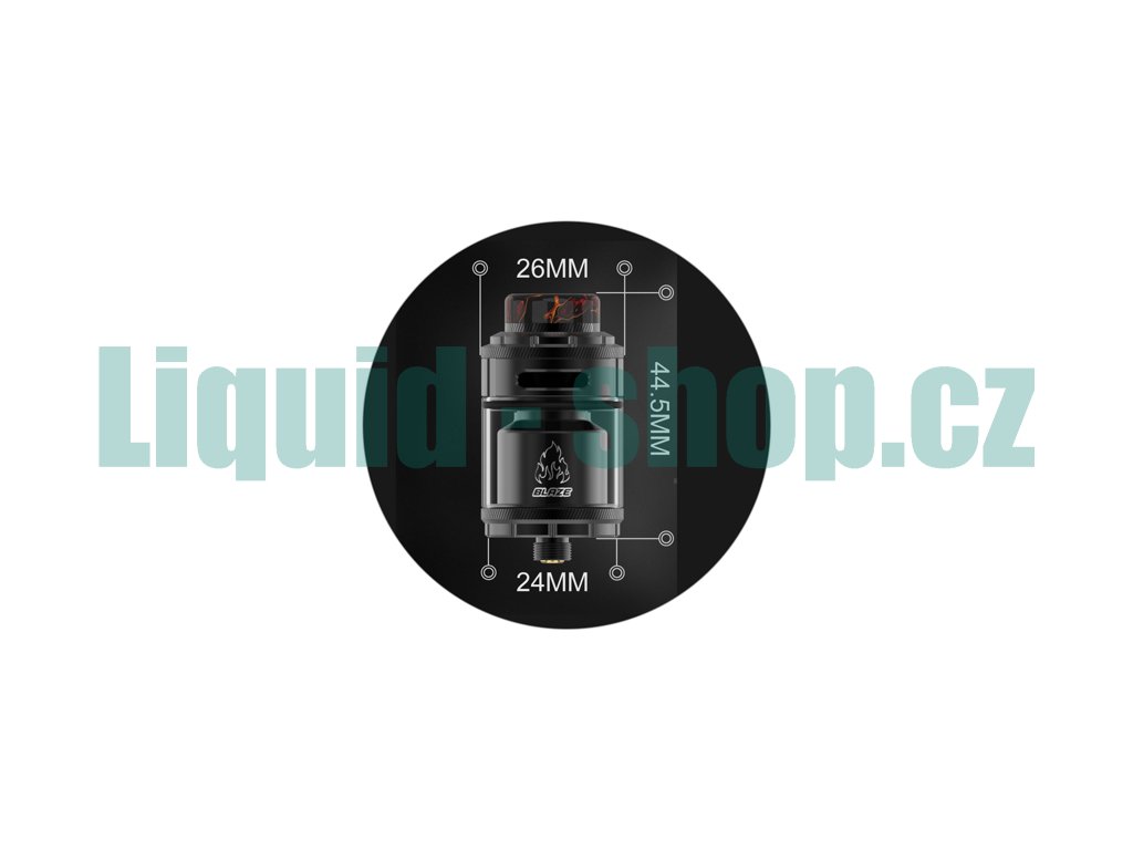 Základní objem tanku činí 2 ml, tuto kapacitu si však budete moci pohodlně navýšit až na 5,5 ml osazením většího pyrexového těla z balení. Mimo obrovskou kapacitu disponuje atomizér také oblíbeným systémem vrchního doplňování. V těle se potom nachází inovativní "WOW" základna pro instalaci dvou spirálek souběžně. Tato základna zároveň nabídne unikátní systém přívodu vzduchu s názvem 270° Honeycomb. Vzduch je přiváděn řadou menších otvorů pod spirálky, odkud poté proudí směrem nahoru do komory. Výsledná chuť je doslova ohromující. Samotnou tuhost potahu si poté můžete ještě regulovat pomocí vrchního systému airflow. THC Blaze RTA je ve všech směrech promyšlený DL atomizér, se kterým se nebudete ani na vteřinu nudit. Zaručeně splní požadavky i těch nejnáročnějších příznivců přímého potahování do plic.
