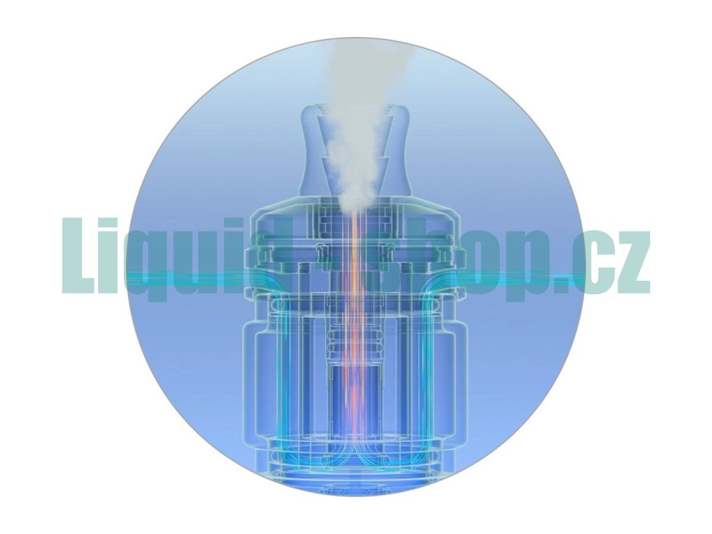 Výborným prvkem atomizéru je potom horní systém regulace vzduchu. Díky umístění v horní části je zajištěna plynulejší a efektivnější cirkulace vzduchu uvnitř atomizéru a zároveň je zamezeno možným únikům e-liquidu, jako tomu může dojít u atomizérů se spodním systémem airflow. Plynulá regulace přívodu vzduchu navíc umožňuje snadné přizpůsobení tuhosti potahování pro jakýkoliv styl vapingu.