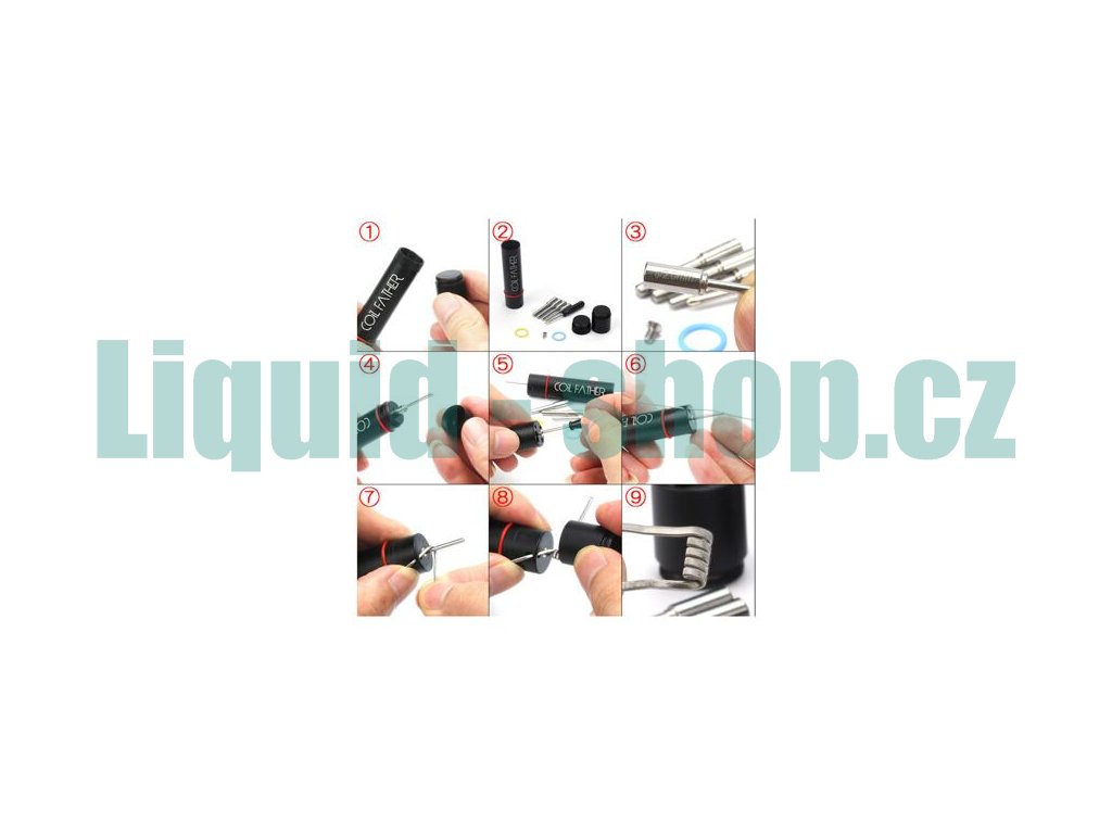 Coil Father Coiling Kit V2 Coil Jig je profesionální nástroj pro tvorbu vlastních spirálek ze všech typů odporových drátů. Do hlavního nástroje umístíte drát, který omotáte kolem trnu a následně vyrobíte vlastní spirálku pomocí menšího vrchního nástroje. V balení najdete hned čtyři hroty s různými průměry pro namotání spirálek s průměrem 2mm, 2,5mm, 3mm a 3,5mm. Všechny součásti jsou vyrobeny z kvalitní nerezové oceli. S tvorbou spirálek si snadno poradí také začátečníci a nenároční uživatelé.
