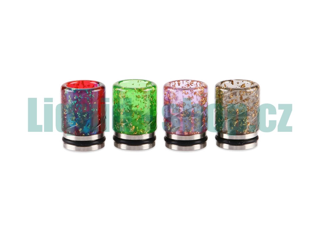 Resinový náustek s nerezovou základnou je kompatibilní s clearomizéry a atomizéry s uchycením náustku 810. Součástí náustku je také těsnění, jeden těsnící kroužek je umístěn přímo na náustku, je tedy vhodný pro většinu atomizérů s uchycením 810 na trhu. Je vyroben z resinu, který je doplněn o stylové zdobení pomocí flitrů. S tímto originálním náustkem budete všude vynikat. Resin navíc výborně izoluje teplo od spirálek a dodává vždy jemnou a vytříbenou chuť výsledné páře.