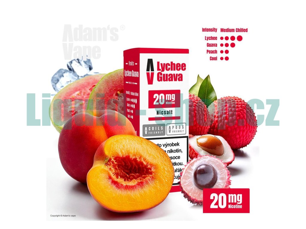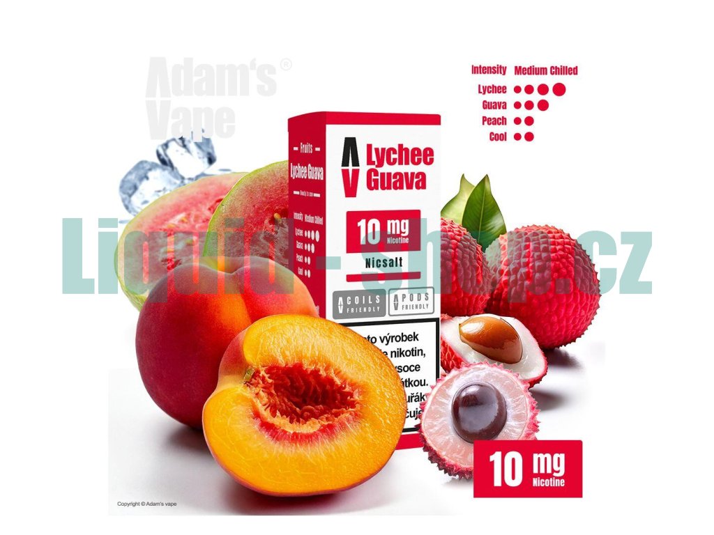 Adam's Vape SALTS Lychee Guava (Liči, guava a broskev) 10ml intenzita nikotinu 10mg tabáková nálepka Kolek Q