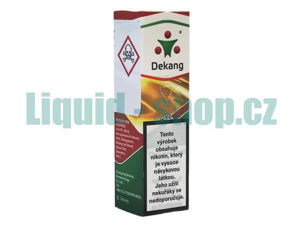 Firma Dekang je největší výrobce e-liquidů na světě a je držitelem osvědčení SGS a dalších. Dekang patří k těm nejkvalitnějším na trhu. E-liquidy Dekang zaručují vysokou dýmivost a skvělou chuť, která je dominantní charakteristikou všech jeho náplní. Dekang substance jsou velmi pečlivě vybírány a neobsahují dehet.