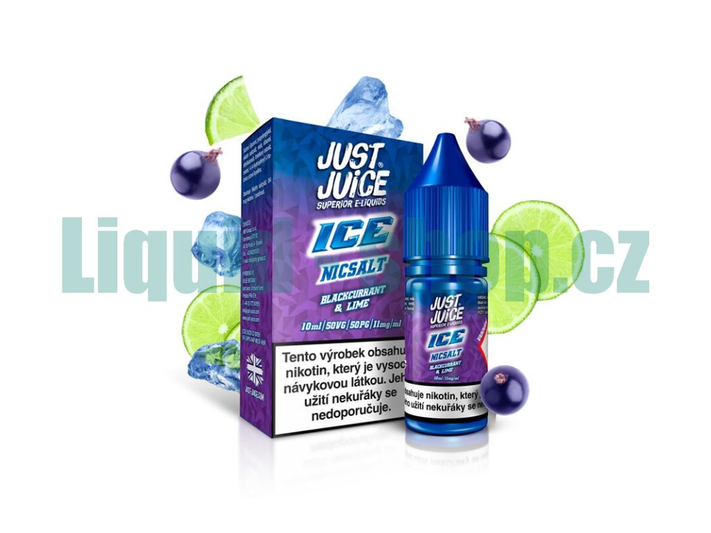 Just Juice Salt ICE Blackcurrant & Lime (Ledový černý rybíz & limetka) 10ml intenzita nikotinu 11mg tabáková nálepka Kolek Q