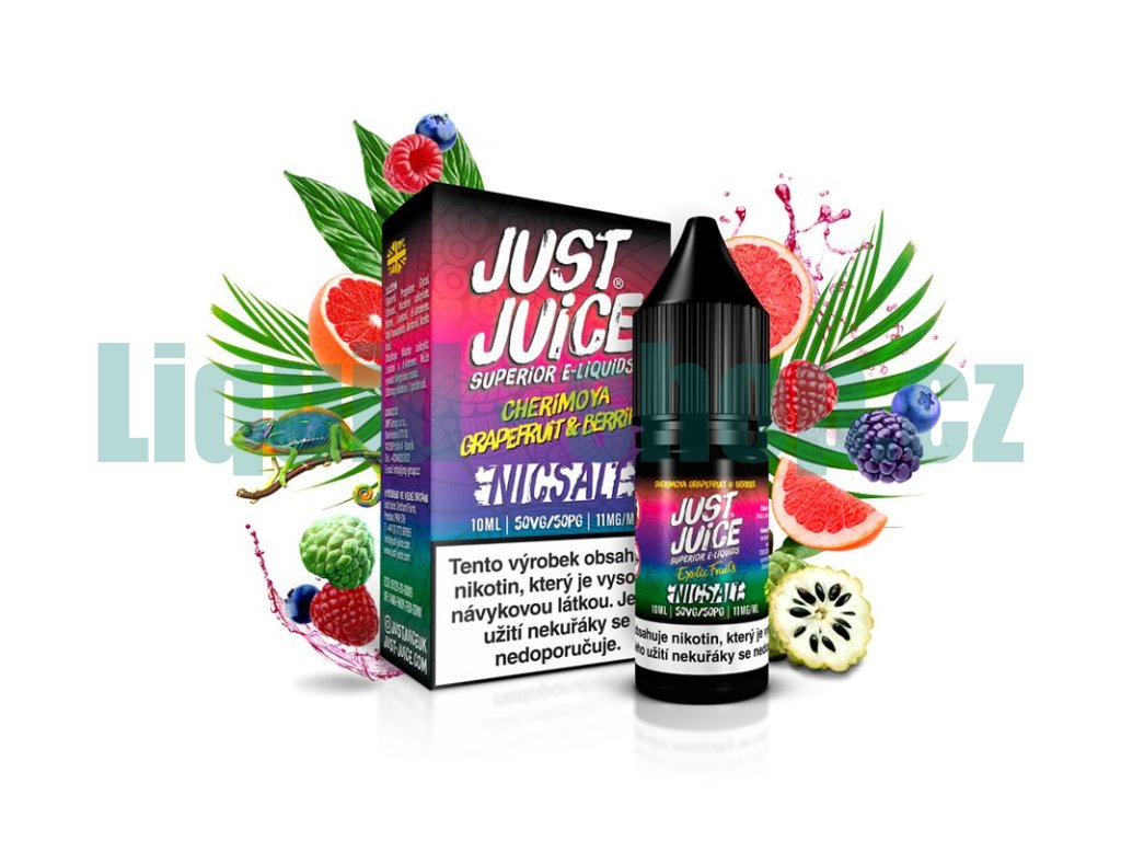 Just Juice Salt Cherimoya Grapefruit & Berries (Cherimoya, grapefruit a bobule) 10ml intenzita nikotinu 20mg tabáková nálepka Kolek Q