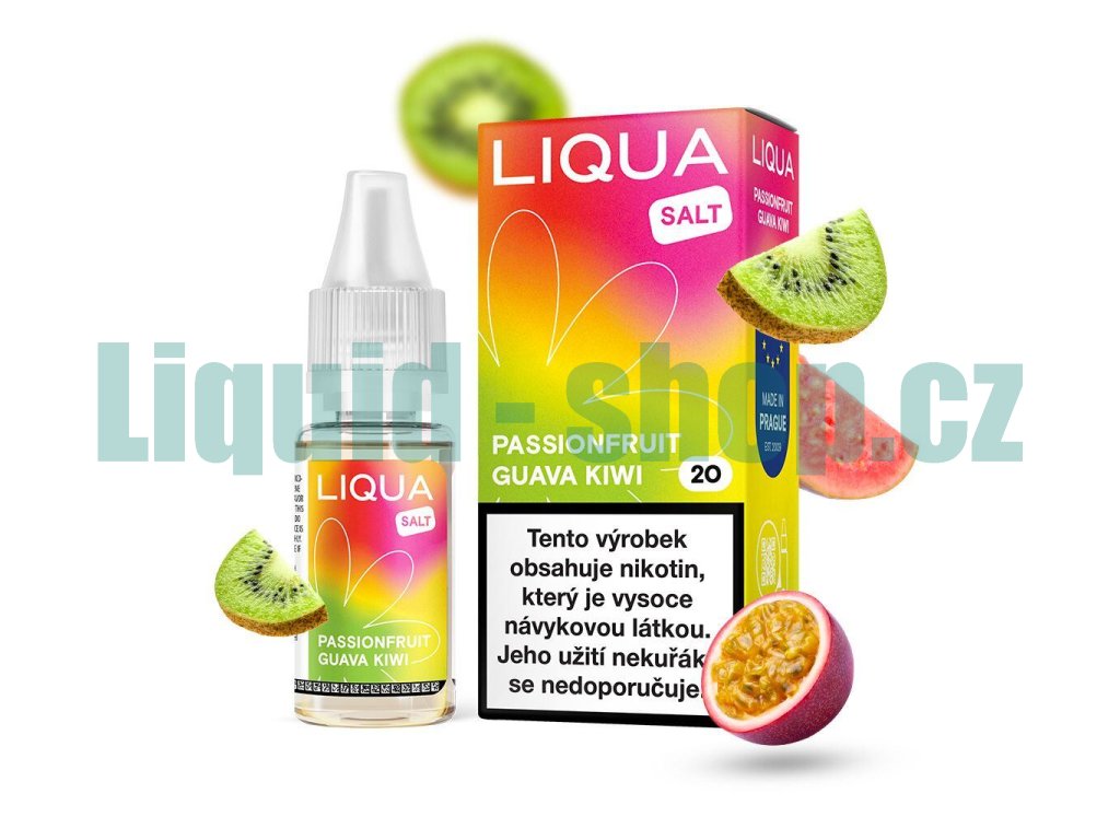 LIQUA Salt Passionfruit Guava Kiwi (Kiwi, marakuja a guava) 10ml intenzita nikotinu 10mg tabáková nálepka Kolek Q