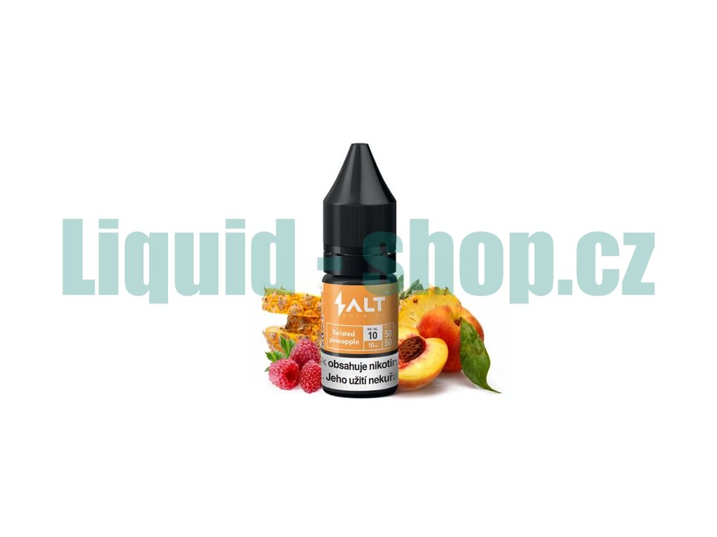 Salt Brew Co Twisted Pineapple (Ananas, broskev a malina) 10ml intenzita nikotinu 10mg tabáková nálepka Kolek Q