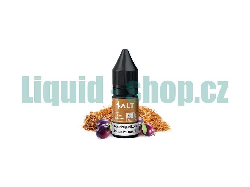 Salt Brew Co Plum Tobacco (Tabák se švestkou a vanilkou) 10ml intenzita nikotinu 20mg tabáková nálepka Kolek Q