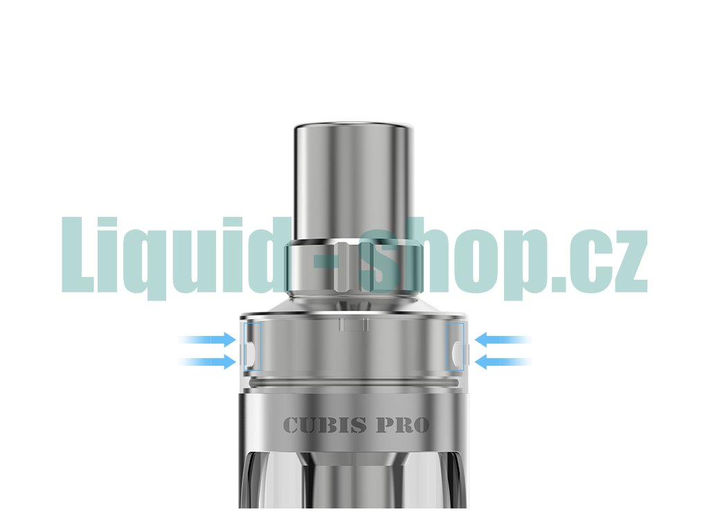 Joyetech eGo Mega Twist+ je propojení veleúspěšného clearomizeru CUBIS Pro a zbrusu nové baterie eGo Mega Twist+ o kapacitě 2300mAh. Ve spodní části baterie se nachází regulační kroužek pro nastavení výkonu (5W-30W) a módu BYPASS - využívá maximální výkon baterie bez ohledu na materiál spirálky = žádné nastavování, lze využít i atomizery pro režim TC. Spínací tlačítko je lehce ovladatelné s barevnou indikací změny režimu. Mezi její další přednosti patří dvojitý ochranný obvod, tj. ochrana proti přebití a podbití. Clearomizer CUBIS Pro je vylepšená verze původního modelu. První novinkou je navýšení objemu nádržky z 3,5ml na 4ml. Je vylepšen systém horního plnění, kde již nemusíte odšroubovávat celou vrchní základnu se žhavící hlavou, ale jen část pod náustkem a liquid plníte jedním ze dvou otvorů. Lze samozřejmě plnit i jako u předchozí verze, kde po odšroubování vrchní části, která obsahuje žhavící hlavu, plníte liquid do samotného těla clearomizeru, kde není již žádný kouřovod, takže v plnění nic nepřekáží a liquid můžete do clearomizeru doslova nalít a nemusíte se spoléhat na tenká kapátka nebo různé plnící lahvičky. Ve vrchní části se nachází i vylepšený přívod vzduchu pro optimální prožitek z vapingu. Celý clearomizer je plně rozebíratelný a vyrobený z nerez oceli a Pyrexu. CUBIS Pro Vás překvapí novými atomizery LVC Clapton (úprava přívodu liquidu ke spirálce) a QCS (snadná výměna bavlny při zachování nerezové trubičky s vyfrézovanými otvory = Notchcoil). Opět se můžeme spolehnout i na atomizery řady BF, BF Clapton = režim VW a BF SS316, který lze využit pro režim nastavování teploty. V balení je přibalen i další náustek, u kterého je vnitřní část spirálovitého tvaru = ochrana proti případnému prskání liquidu do úst.