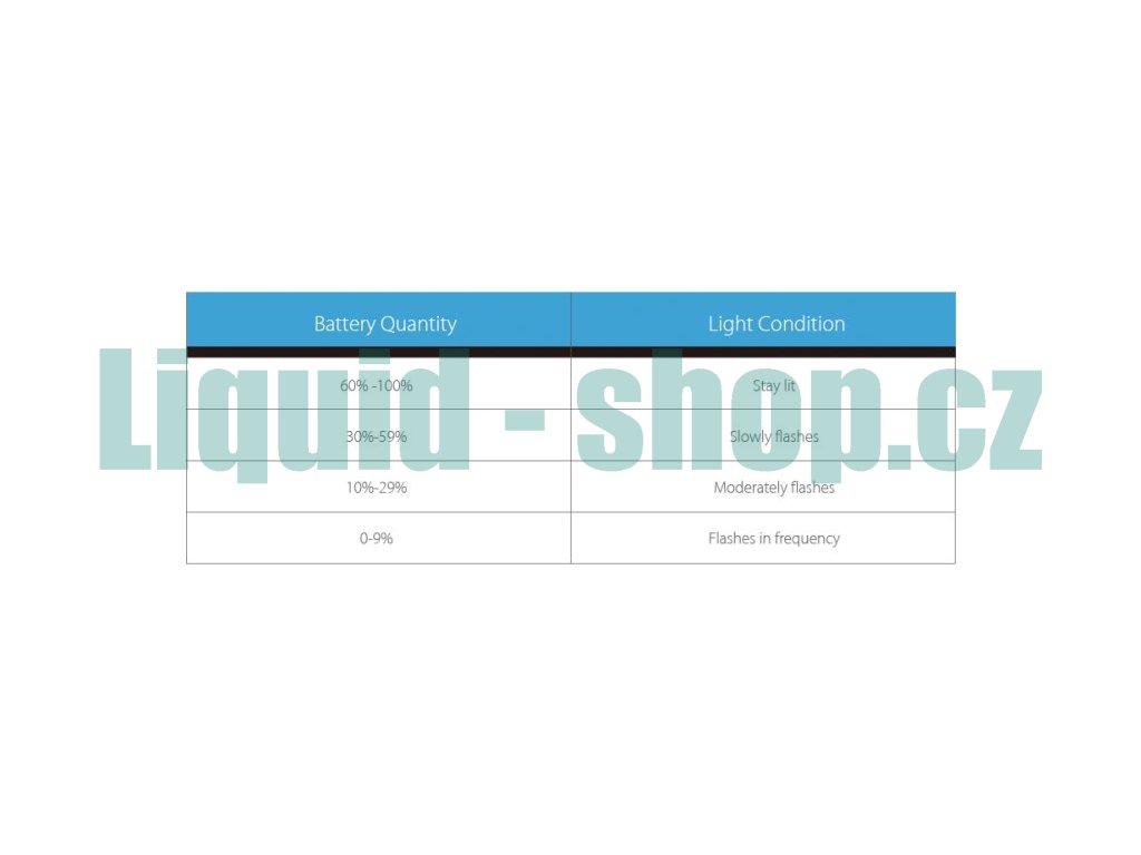 2 Mody: Přímé napětí - automaticky upravuje výkon cigarety na základě stavu nabití baterie