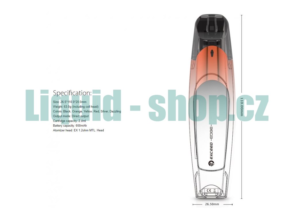 Nový přírůstek modelu Exceed se nechal inspiroval designem sportovních aut. Exceed Edge se řadí mezi menší přístroje pro vaping, avšak přináší vestavěnou baterii o kapacitě 650mAh, která při instalaci atomizeru 1,2ohm drží standardní MTL vapování. Tato baterie je vybavena i indikátorem stavu nabití a pohodlným bočním spínacím tlačítkem. Jednoduché doplňování liquidu přímo do cartridge o objemu 2ml.