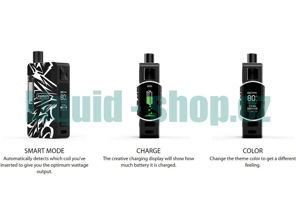Kompaktní Pod Grip s výkonem až 80W, cartridge s objemem až 2,6ml, OELD displej, na baterii 18650, USB-C nabíjení, kompatibilní s Joyetech EZ atomizéry.
