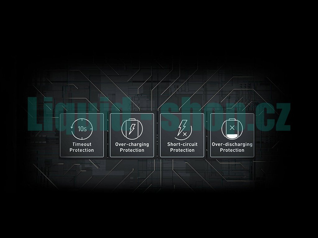 Bezpečnost především Joyetech Teros ONE disponuje celou řadou bezpečnostních prvků, mezi něž patří ochrana baterie proti přebití a podbití, pojistka proti nadměrně dlouhému potažení, zabraňující připálení vaty uvnitř žhavící hlavy. Nesmí samozřejmě chybět ani ochrana proti zkratu.