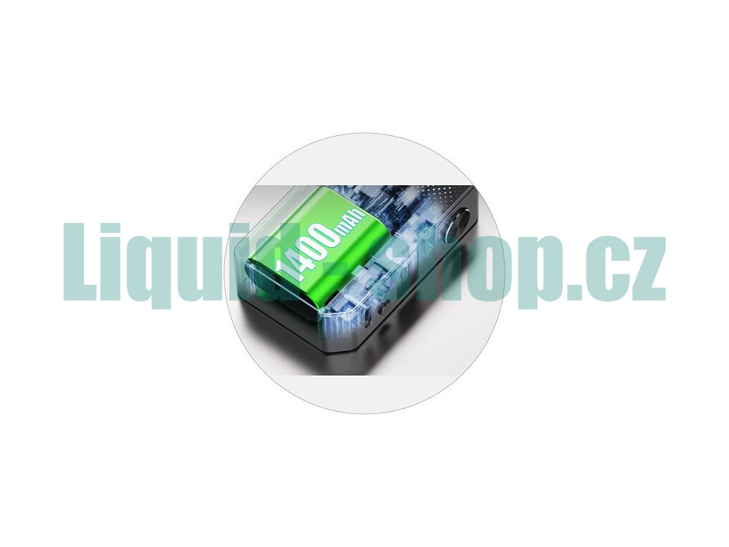 Tělo zařízení disponuje obrovskou integrovanou baterií o kapacitě 1400mAh, ta zajišťuje dlouhou výdrž a možnost intenzivního potahování po mnoho hodin bez nutnosti častého opětovného dobíjení. Pro potřeby nabíjení najdete v přední části moderní rozhraní USB-C s podporou nabíjení proudem až 1.4A.
