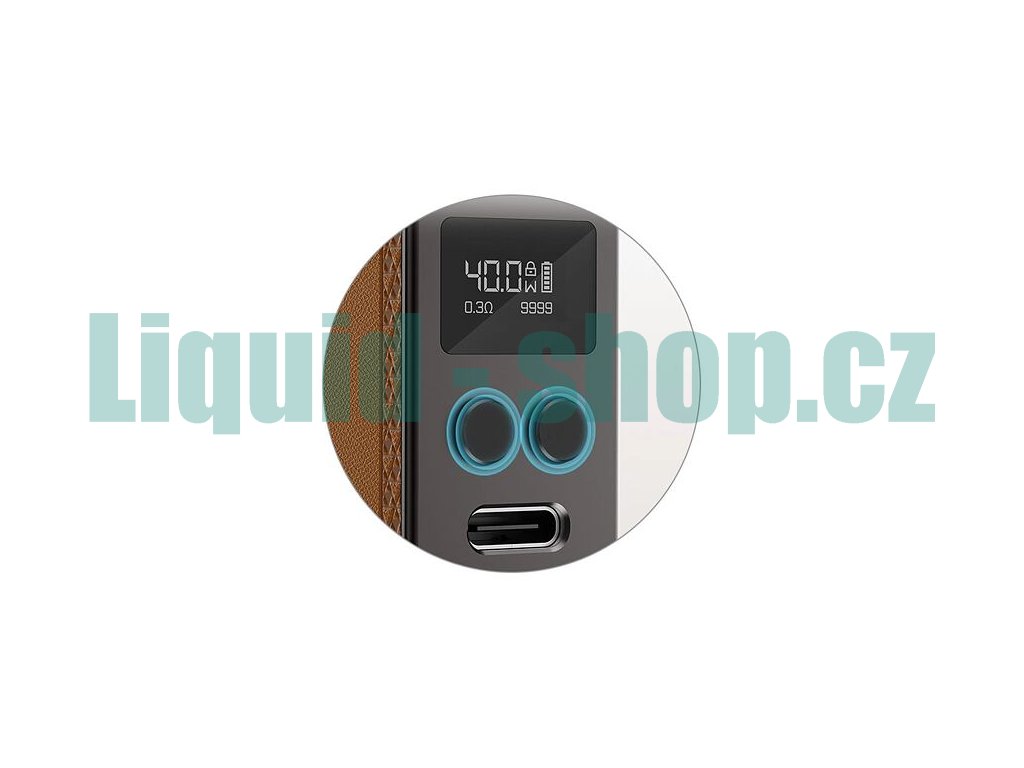 V designu zařízení Lost Vape Centaurus E40 MAX se snoubí elegance tradiční římská architektura a moderní technologie. Boční kožené panely jsou krásně poddajné a v dlani působí velmi příjemným dojmem. Vše potom dokresluje ergonomicky zpracované tělo pro pohodlné držení zařízení při každodenním používání. Na výběr jsou moderní a velmi stylové barevné varianty, které dokážou zaujmout každého vapera.