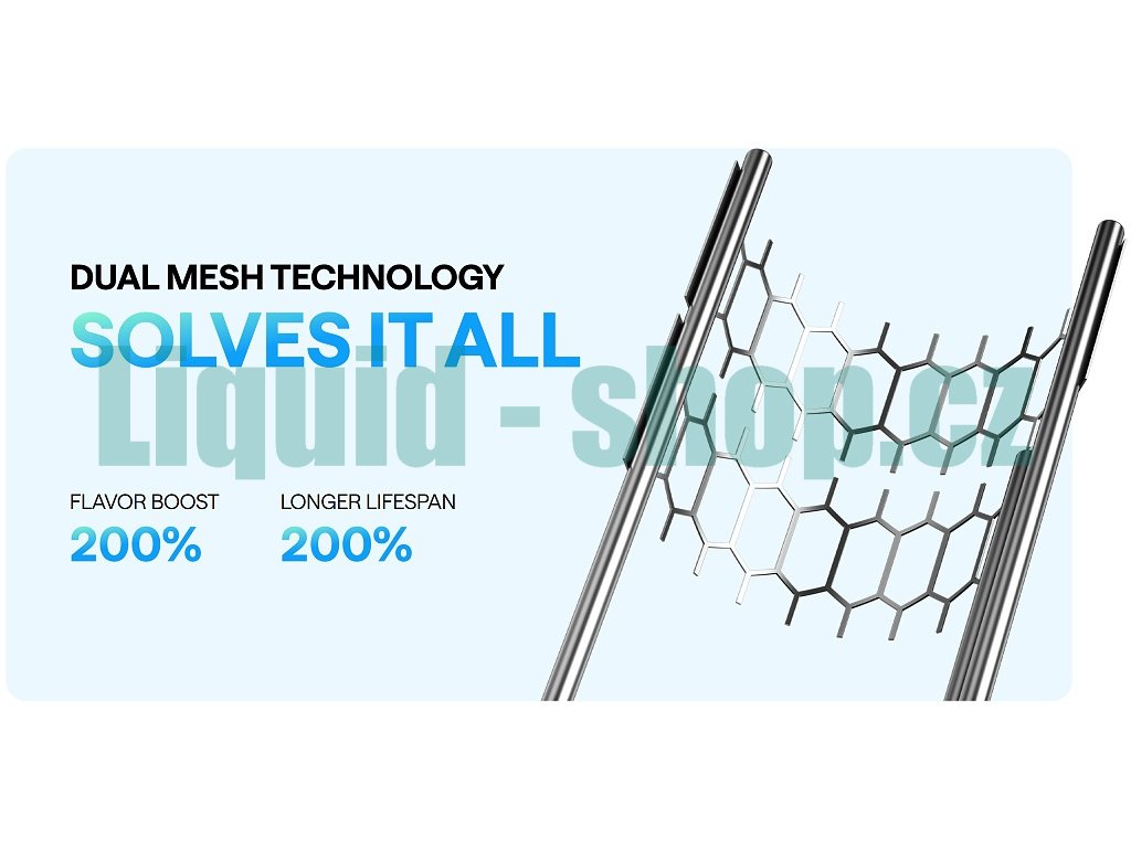 Žhavící hlavyPod Cartridge obsahuje dvě mesh spirálky z Kanthal materiálu, které se v režimu ECO střídají pro delší životnost. V režimu BOOST žhaví současně pro plnější chuť a větší tvorbu páry, což umožňuje přizpůsobit si styl vapování dle nálady a preferencí uživatele. Technologie Dual Mesh tak poskytuje flexibilitu mezi úsporou a výkonem při zachování vynikající chuti. |