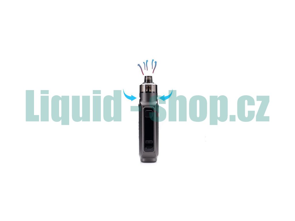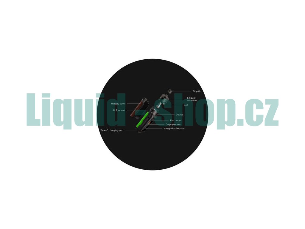 Odklopením zadního krytu objevíte slot pro vložení externí baterie. Zařízení pracuje s jednou baterií typu 18650. Díky pohonu na externí baterii je zajištěn stabilní chod zařízení, rychlý náběh žhavení a možnost využití vysokého výstupního výkonu, jež dosahuje až 80 W. Baterii si navíc kdykoliv pohodlně dobijete přímo v e-cigaretě díky portu USB-C v přední části. Lze ji dobíjet proudem až 2 A.