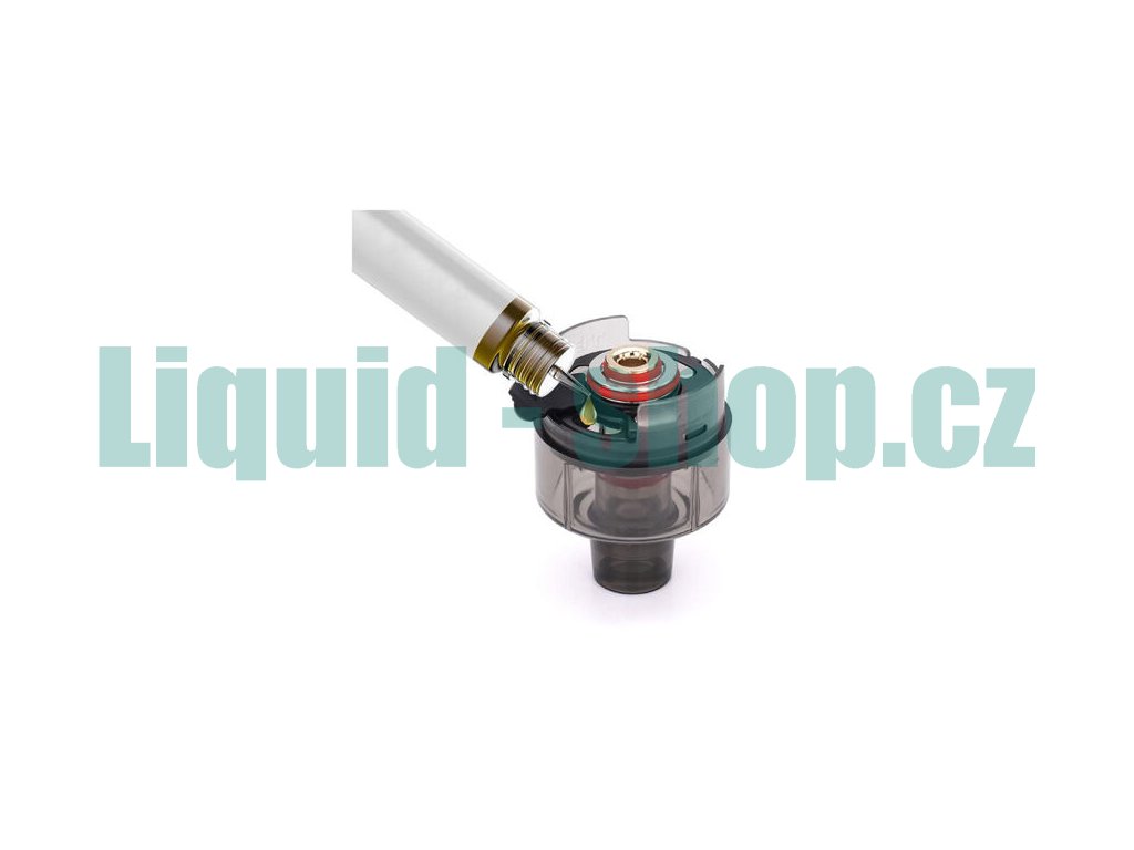Ve vrchní části se nachází cartridge s velkým objemem a ergonomicky tvarovaným náustkem. Do cartridge je možné doplnit až 4 ml e-liquidu, díky čemuž můžete e-cigaretu bez problému používat také velice intenzivně bez nutnosti častého doplňování. V případě potřeby ji potom jen vyjmete z těla baterie, otočíte vzhůru nohama a během pár vteřin doplníte e-liquid zpět.
