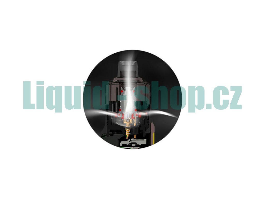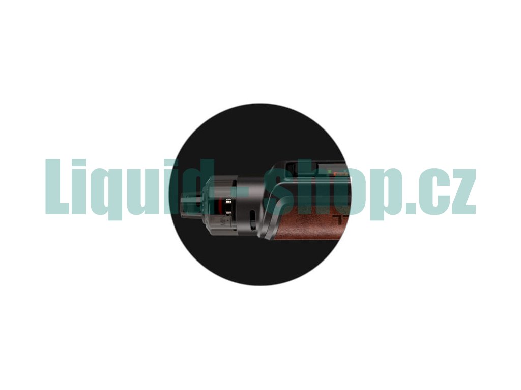 Odklopením zadního krytu objevíte slot pro vložení externí baterie. Zařízení pracuje s jednou baterií typu 18650. Díky pohonu na externí baterii je zajištěn stabilní chod zařízení, rychlý náběh žhavení a možnost využití vysokého výstupního výkonu, jež dosahuje až 80 W. Baterii si navíc kdykoliv pohodlně dobijete přímo v e-cigaretě díky portu USB-C v přední části. Lze ji dobíjet proudem až 2 A.