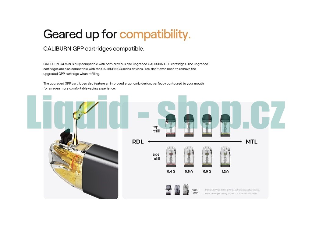 • Kompatibilní Pod Cartridge Uwell Caliburn GPP naleznete zde