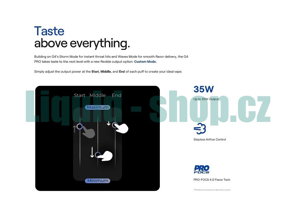 Elektronická cigareta nabízí široký rozsah výkonu od 5 do 35W s možností přesné regulace podle vašich preferencí a použité cartridge. Inteligentní systém kontroly výkonu zajišťuje optimální provoz při jakémkoliv nastavení a zabraňuje přehřívání nebo pálení chuti. Vyšší maximální výkon 35W umožňuje plné využití pokročilé technologie PRO-FOCS 4.0.