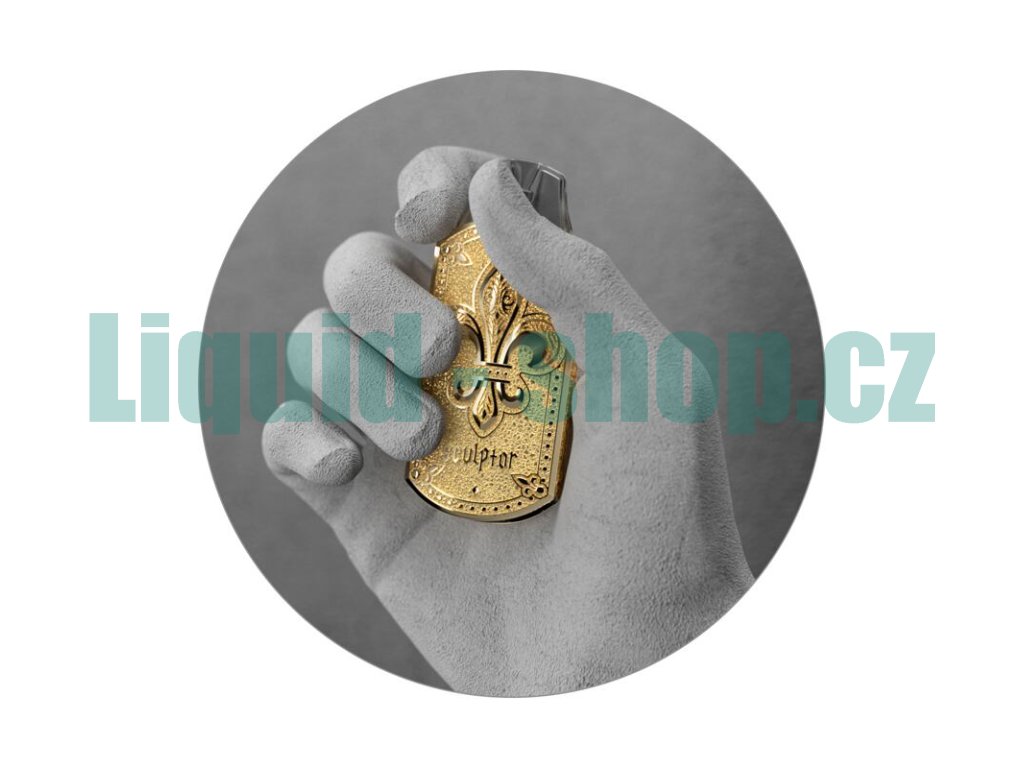 S netradičně zpracovanou a nádhernou e-cigaretou přichází výrobce Uwell. Model s názvem Uwell Sculptor Pod Kit se může pyšnit elegantní kovovou konstrukcí celého těla, které je výsledkem dlouhotrvajícího a pečlivého vývoje návrhářů této renomované společnosti. Kovové tělo zařízení potom zdobí nádherná rytina v podobě Fleur de lis, heraldického znaku lilie. Celé zařízení budí dojem luxusu také díky velkému množství barevných zpracování, ve kterých se vyrábí. Rozměry těla činí krásných 32.6 x 15 x 77.1 mm, zařízení perfektně padne do dlaně a příjemně se používá. V jeho těle se nachází integrovaná baterie s kapacitou 370 mAh, která je vhodná pro utaženější MTL potahování. V případě nutnosti budete moci baterii dobíjet prostřednictvím USB-C portu umístěném ve spodní části těla.