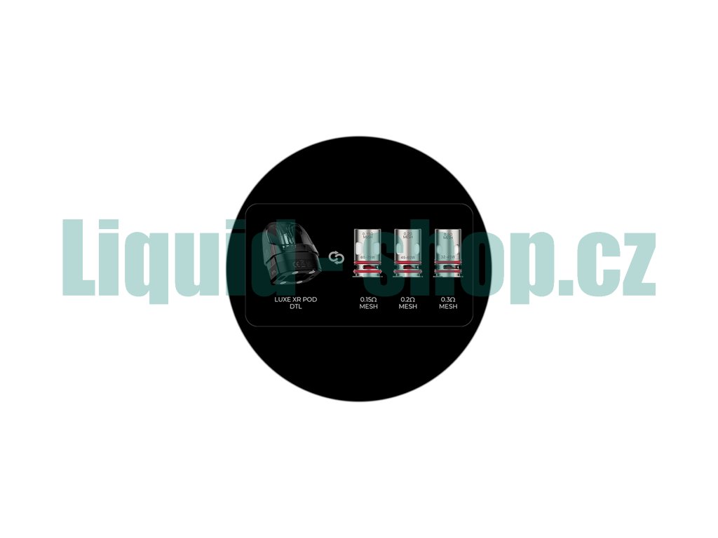 Cartridge XR Pod v základním balení je kompatibilní se žhavícími hlavami z platformy GTX. Tato platforma nabídne celou řadu různorodých odporů a typů žhavících hlav. V základním balení na vás čeká tělísko GTX Mesh s odporem 0,2 ohm a GTX Mesh s odporem 0,4 ohm. Model LUXE XR MAX je zároveň zpětně kompatibilní také s cartridgemi LUXE X s integrovanými hlavami, které se dají pořídit samostatně.