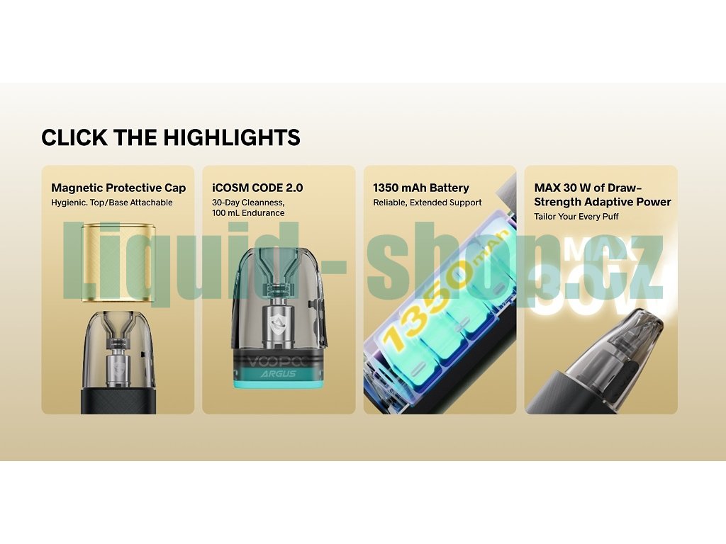 - 1x VOOPOO Argus Klyc tělo s baterií 1350mAh