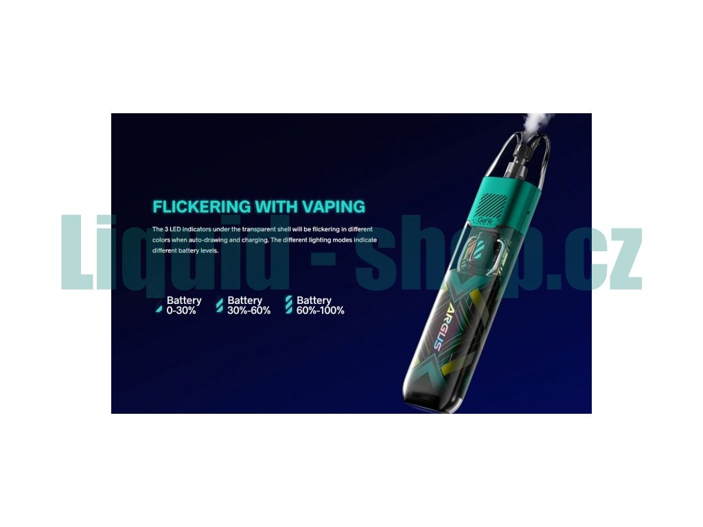 Elektronická cigareta VOOPOO ARGUS P1s Vás zaujme svým futuristickým designem, rychlým USB-C nabíjením (100% za pouhých 20 minut) a stylovým LED indikátorem stavu nabití. Vestavěný monočlánek o kapacitě 800mAh společně se speciální technologií ITO pro MTL vaping poskytuje stabilní chuť s nastavením výkonu 5W-25W a prodlužuje tím tak životnost spirálky. Vyměnitelnou cartridge (ARGUS POD) o objemu 2ml pohodlně naplníte díky jednoduchému bočnímu plnění. Na výběr máte mezi cartridgemi s vestavěnou žhavicí hlavou nebo cartridgí s vyměnitelnou žhavící hlavou ITO-M. Cartridge disponuje 4-otvorovým spodním přívodem vzduchu a společně s důmyslnou regulací přívodu vzduchu na boční straně baterie zajišťují skvělou dýmivost a autentickou chuť liquidu.