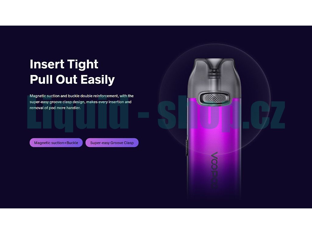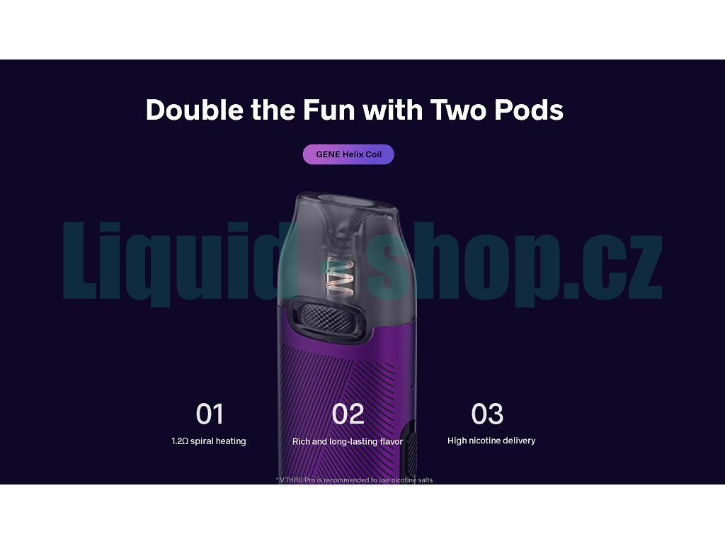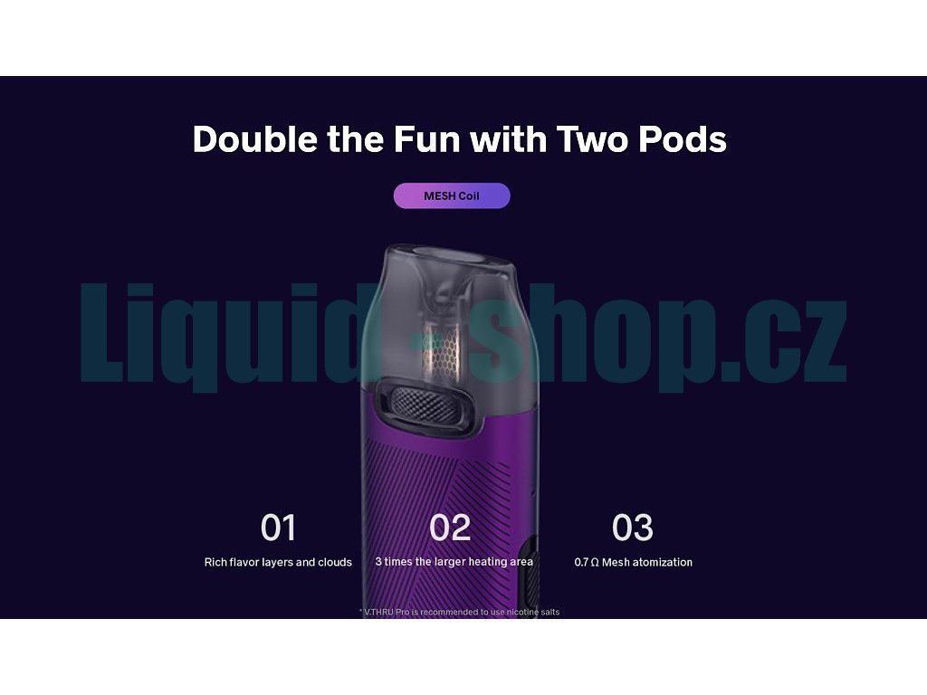 Možnost nastavení výkonu Elektronická cigareta Voopoo V.THRU Pro nabízí vskutku malé rozměry, ale také nízkou hmotnost, díky čemuž jí lze velmi snadno přenášet v téměř jakékoli kapse. Na 0,69 palcovém OLED displeji se zobrazují veškěré potřebné informace o zařízení. Elektronická cigareta disponuje inteligentním režimem dětské pojistky, aby se zabránilo náhodnému spuštění dětmi. Samotná Pod Cartridge disponuje magnetickým uchycením a její doplňování a případná výměna je tak otázkou několika málo vteřin.