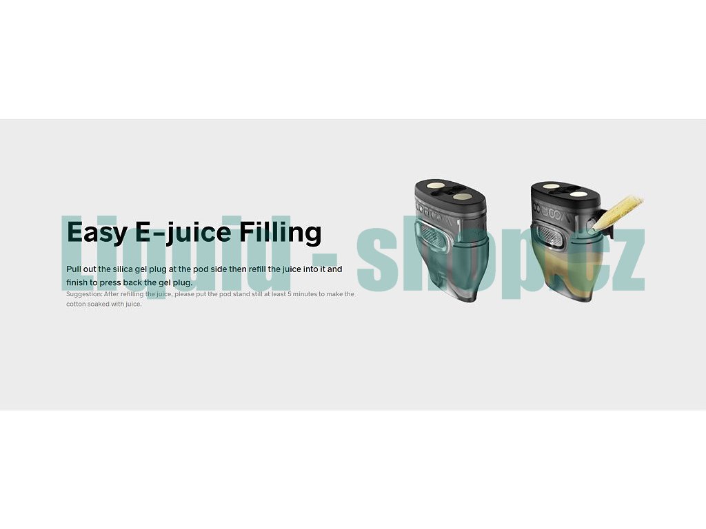 Propracované Pod Cartridge Součástí balení jsou hned dvě Pod cartridge s celkovým objemem 3 ml. Obě cartridge jsou vhodné pro klasické šlukování. První z nich nabídne integrovanou žhavící hlavu s mesh pletivem a odporem 0,7 ohm, která je ideální pro vzdušnější potah. Druhá Pod Cartridge disponuje odporem 1,2 ohm a je vhodná pro utažené MTL. Samotné plnění je velmi jednoduché a probíhá odejmutím boční silikonové krytky, kde se nachází plnící otvor. |