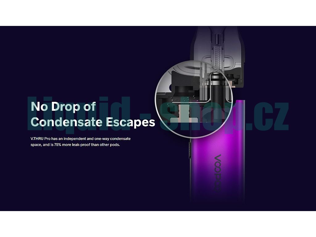 Elektronická cigareta Voopoo V.THRU Pro Kit je snadno použitelná a dostupná startovací sada, který má malé rozměry, ale velký výkon. Je napájena vestavěnou baterií o kapacitě 900mAh s rychlonabíjecím portem typu USB-C 5V/1A. Díky beztlačítkovému ovládání a prvotřídnímu designu se V.THRU Pro snadno používá, přenáší a její konstrukční provedení přináší opravdu příjemný požitek z vapování.