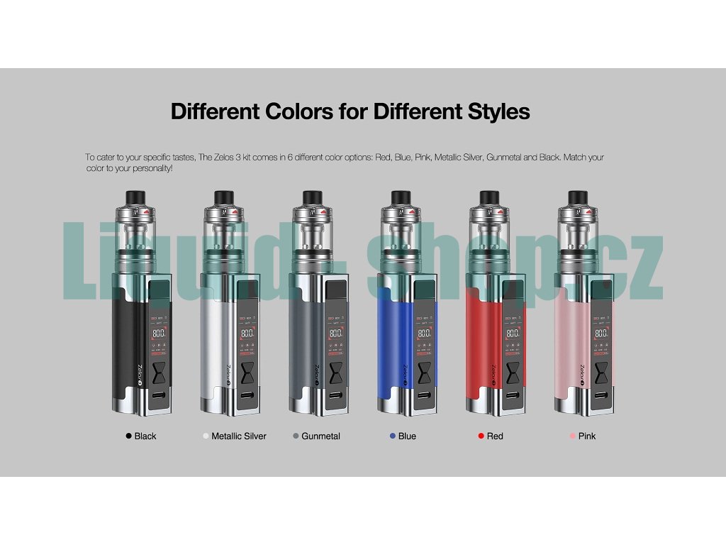 Výkonný SET Gripu Aspire Zelos 3 a Clearomizeru Aspire Nautilus 3, vyrobený z lehké zinkové slitiny, disponující vestavnou baterií s vynikající kapacitou 3200mAh. Nastavitelný výkon 1-80W, režimy VW, VV, Bypass, TC, TCR, CPS. Objem Clearomizéru 2ml, propracované Airflow, možnost použití jak MTL, tak DL, podpora žhavících hlav Nautilus BVC, 2x žhavící hlava v SETU.