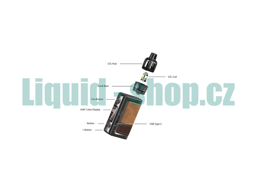 Ve vrchní části najdete závit typu 510 pro kompatibilitu s atomizéry se stejným typem uchycení. Tělo modu je poháněno prvotřídním čipem Avatar pro perfektní výsledky při žhavení. Čip nabídne přehledné uživatelské rozhraní, efektivní náběh žhavení a tři výstupní režimy. Najdete zde režim výkonu s hodnotou až 160 W, režim Smart pro inteligentní detekci připojeného tělíska a nastavení doporučeného výkonu a režim Voltage pro regulaci výstupního napětí. Clearomizér Eleaf GTL Pod Kit nabídne vše potřebné pro všechny typy vaperů. Můžete ho používat na utaženější DL, nebo na vzdušnější MTL potah, zároveň nabídne objem 4,5 ml pro dlouhou výdrž bez potřeby plnění. Ve spodní části si můžete regulovat přísun vzduchu. Jedná se o vynikající soupravu modu a clearomizéru, se kterou se nebudete ani na vteřinu nudit.