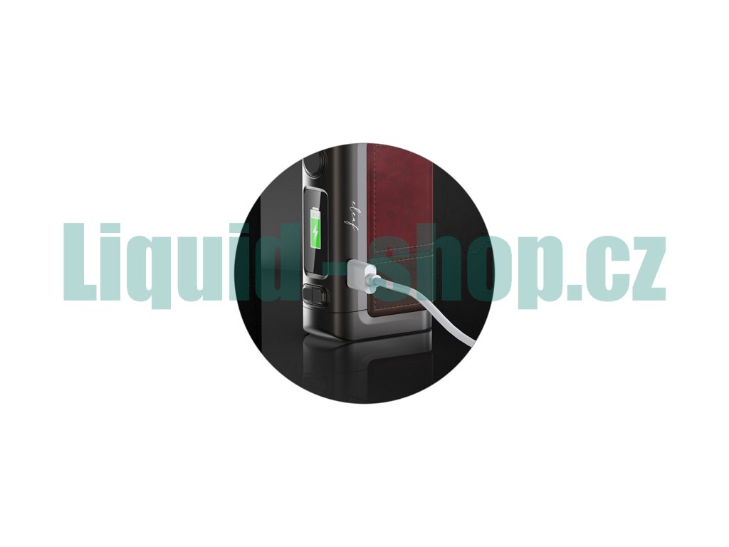 Ve spodní části se nachází slot pro dvě externí baterie typu 18650. Po vložení vlastních baterií můžete začít využívat mod naplno. Nespornou výhodou je také podpora dobíjení baterií přímo v modu. Jednoduše připojíte USB-C kabel k modu a začnete dobíjet pomocí adaptéru, nebo počítače. Díky pohonu na dvě baterie se můžete těšit na bezproblémový chod a rychlý náběh žhavení.