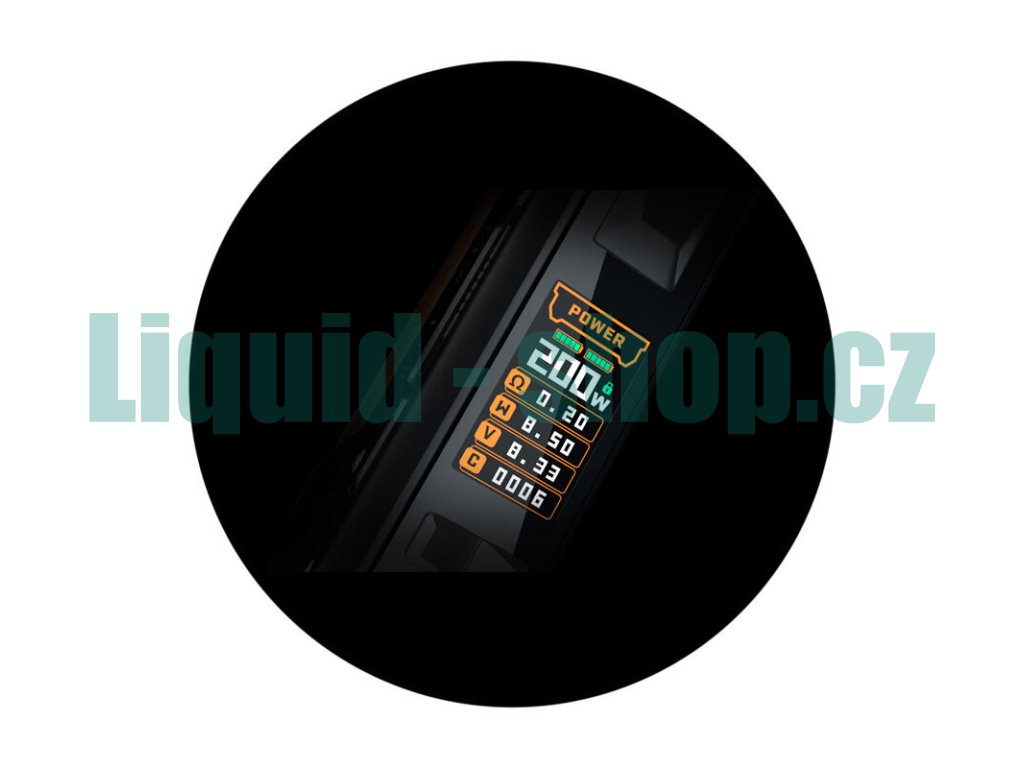 Díky pohonu na dvě baterie se můžete těšit nejenom na extrémně rychlý náběh žhavení, ale také na vysoký výstupní výkon. Ten totiž dosahuje až 200 W. Mod tak bez problému uspokojí i ty nejnáročnější vyznavače cloud chasingu a přímého potahování do plic. Výkon si můžete pohodlně regulovat pomocí regulačních tlačítek v rozpětí 5 - 200 W. Nastavení celého modu je nesmírně snadné a intuitivní.
