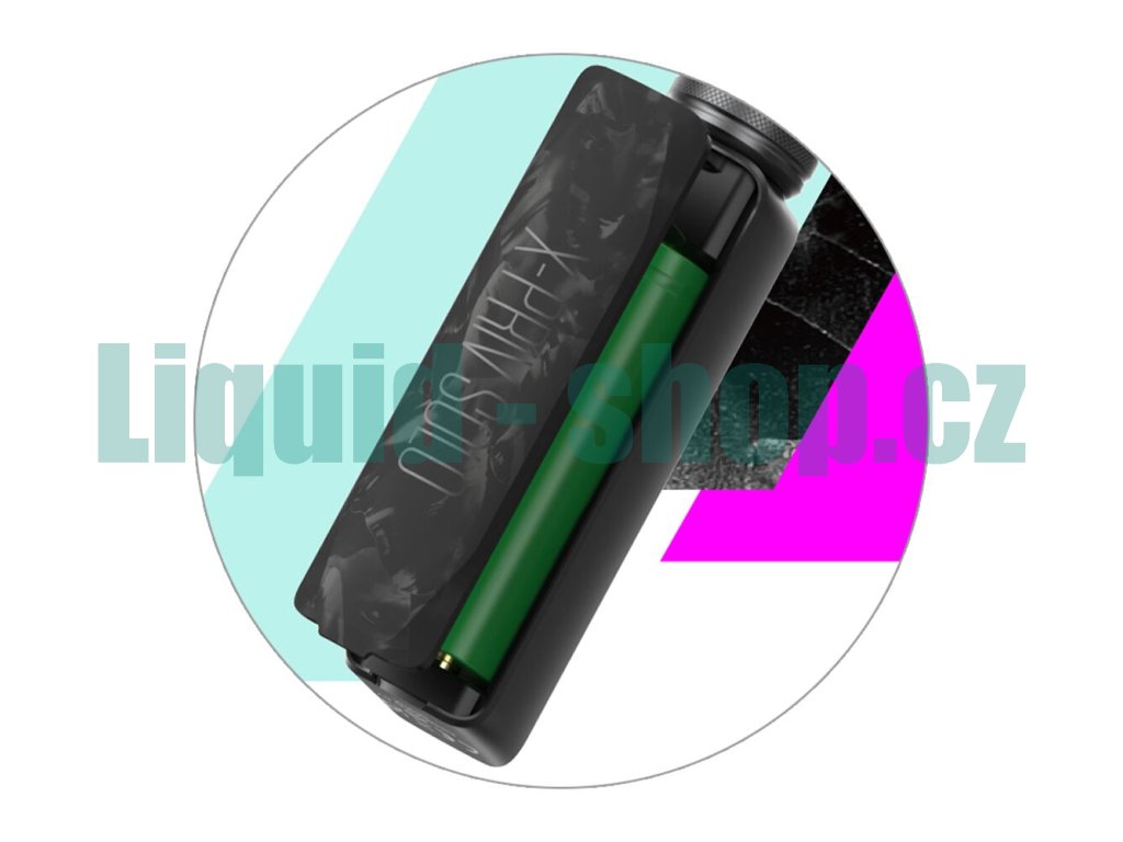 Boční panel se silnými magnetickými úchyty ukrývá slot pro vložení vlastní baterie. Mod pracuje s bateriemi typu 18650. Do těla si tak snadno zvolíte svou oblíbenou baterii tohoto typu dle vašich potřeb a můžete se těšit na obrovský výkon a hladký náběh žhavení s téměř instantní odezvou. Baterii si můžete také pohodlně dobíjet přímo ve vašem modu díky portu USB-C s podporou rychlého nabíjení.